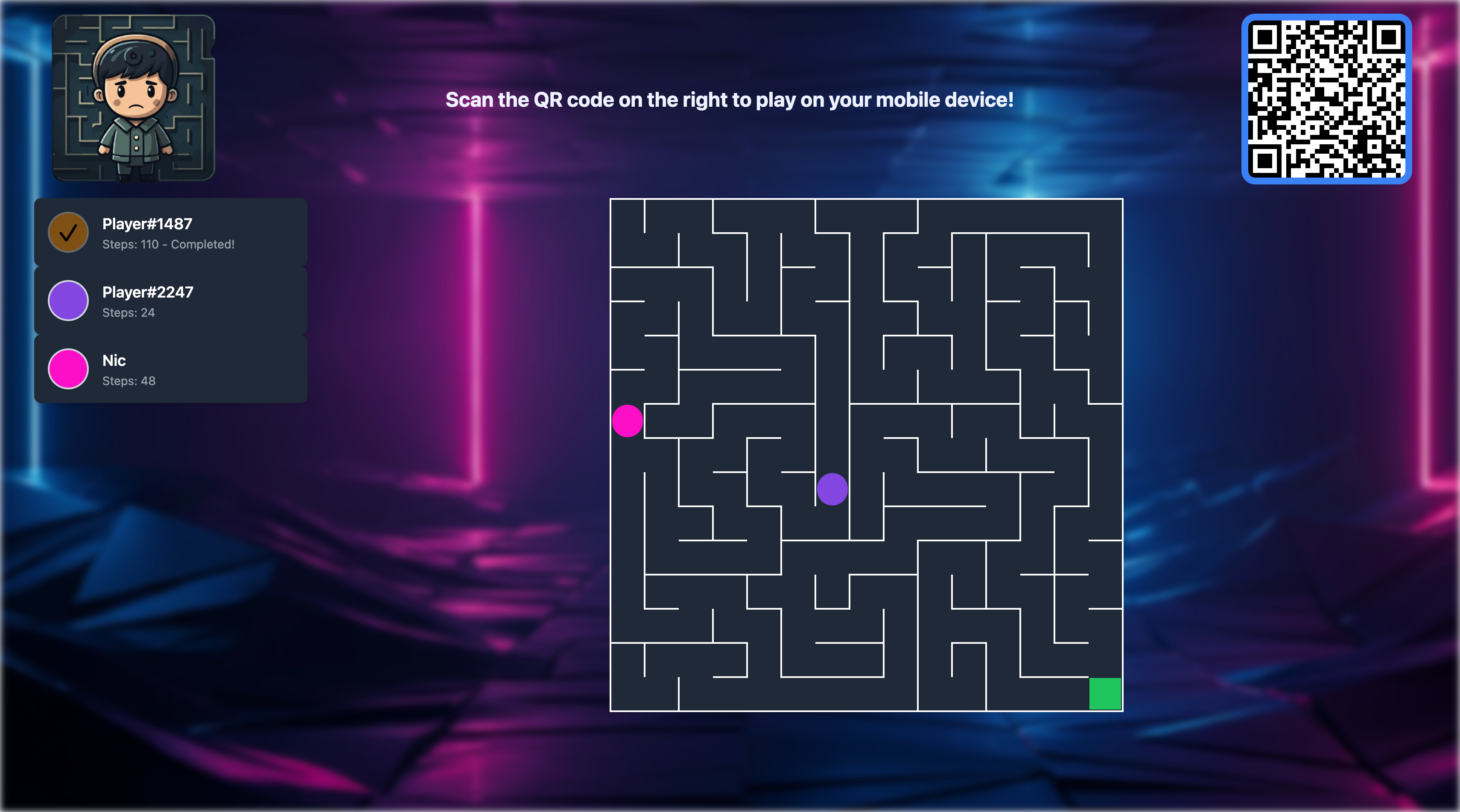 MazeWith is a full-stack, real-time multiplayer maze game built with React and TypeScript. The game features a dynamic maze generation algorithm, real-time player movement, and a chat system. The backend is powered by Node.js and Socket.io, enabling seamless communication between players. MazeWith offers an engaging and interactive gaming experience for players of all ages.
